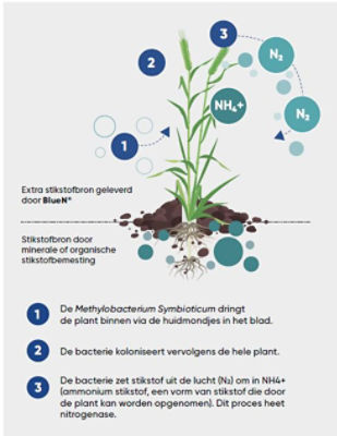BlueN® is een innovatie op het gebied van stikstofbemesting. BlueN® stelt gewassen in staat om op natuurlijke wijze stikstof uit de lucht te binden. Het is een nieuwe stikstofbron voor het gewas als aanvulling op de organische en minerale bemesting. Ook zou het een deel van deze traditionele bemesting kunnen vervangen of het gat vullen tussen de optimale bemesting en de wettelijk toegestane bemesting. BlueN® wordt in het begin van de teelt over het gewas gespoten en mag ook gebruikt worden in de biologische landbouw.