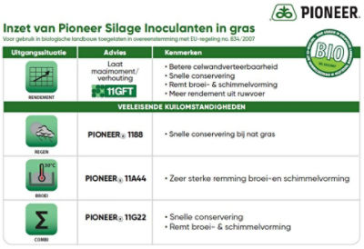 Combi-inoculanten bevatten vaak zowel melkzuurbacteriën als een broeiremmer (L. buchneri). In de latere snedes is echter vooral de snelle conservering belangrijk. Het is belangrijk om daar dan ook maximaal op te focussen. Broei is namelijk meestal geen issue in deze kuilen. Daardoor heeft het vaak minder zin om combi-middelen te gebruiken, die zowel wat doen op broei als op conservering. Door het gebruik van het enkelvoudige middel 1188, wordt gezorgd voor een zeer snelle pH-daling.